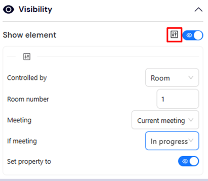 - In the bottom two configurations we can set the element to be either visible or invisible based on the meeting status. In the example above the element will be visible as soon as the meeting starts and will disappear when the meeting is over.